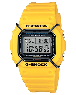 90年代、プロテクターを装備したフォルム・デザインはスケートボードを好む若者達の間で評判となり、ストリートカルチャーシーンにおいて支持されました。スクエアフェイスはそのままに、EL バックライトを搭載して96年にデビューしたDW-5600E。そのシリーズにプロテクターを搭載し、90年代のファッションが注目されている今、待望の復刻を遂げました。