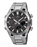 今回のモデルは、立体感のあるインデックスやインダイアルを大胆に配置。ポイントカラーとしてブルーやレッドを用いることで、エディフィスらしいスポーティなデザインに仕上げました。また、都市コードを裏蓋に刻印することで、見やすいワイドフェイスを実現。風防には、傷が付きにくいサファイアガラスを採用。3時位置のインダイアルでは世界29都市のワールドタイム表示が可能です。世界6局の電波受信、針位置自動補正などの機能を搭載し、実用性も兼備。