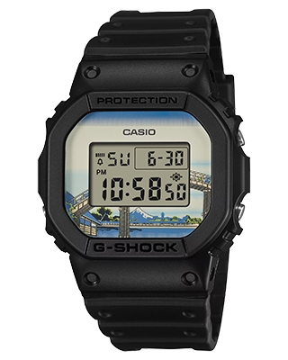 ベースモデルにはアイコニックな定番デジタルDW-5600を採用し、文字板には「深川万年橋下」を大胆にデザイン。