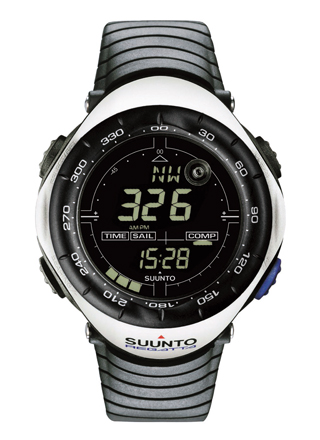 セーリングタイマーと電子コンパスを搭載した、マリンスポーツ用のスント。見た目以上にハードに動き回るヨットレースで使うことを考えているため、ストラップは柔らかなウレタン製で腕馴染みに優れ、重量も55gしかないため快適に着けられる。