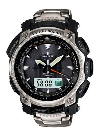 トリプルセンサーを搭載し、気圧/高度、気温、方位を計測。様々な情報をアナログ針とデジタル表示にて表示するので、視認性に優れている。タフムーブメントを使用し、電波時計も世界6局対応するので、海外での登山でも便利に使えるだろう。
