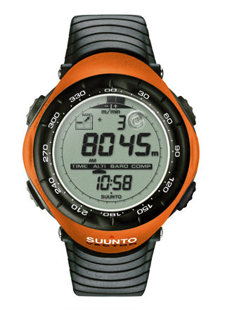 気圧センサーで気圧と高度を計測し、さらに電子コンパスも搭載する。大きな液晶画面を使って様々な情報を一括表示してくれるので、欲しい情報を素早く読み取ることができるだろう。このオレンジの派手色が、気持ちを奮い立たせてくれるに違いない。