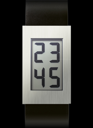 デザイン大国デンマークを代表するグッドデザインブランド「ローゼンダール」。この時計はフレミング・ボー・ハンセンがデザインを担当。黄金比で構築されたソリッドなケースに収まる液晶画面には、時と分のみを表示。リューズすら見せないクールなデザインは、時計とは思えぬスタイリッシュさがある。ちなみに時刻調整は、ケースバックにあるボタンで行う。