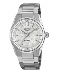 シンプルかつスポーティな10気圧防水のクロノグラフ。8角形ベゼルは天面がフラットでヘアライン仕上げ、側面をミラー仕上げで磨き分けを施しています。明るい色のダイアルが腕元をお洒落に演出します。