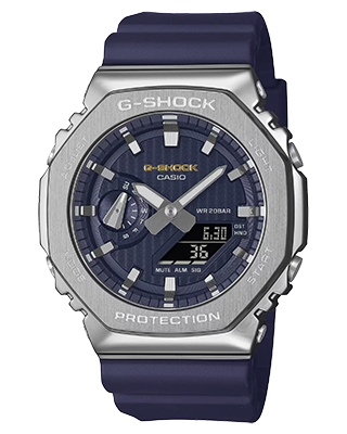 「夜空」をイメージしたネイビーモデルで、文字板のG-SHOCKのロゴのゴールドは星の輝きを、文字板上のストライプパターンは星が降り注ぐ様子を表現しています。