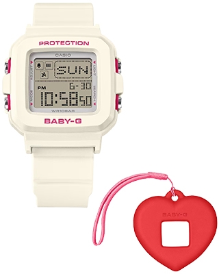 自分の好みに合わせて使い方が楽しめる「BABY-G+PLUS」シリーズの、ハート型時計ホルダーがポップなモデルです。