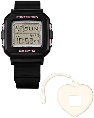 自分の好みに合わせて使い方が楽しめる「BABY-G+PLUS」シリーズの、ハート型時計ホルダーがポップなモデルです。