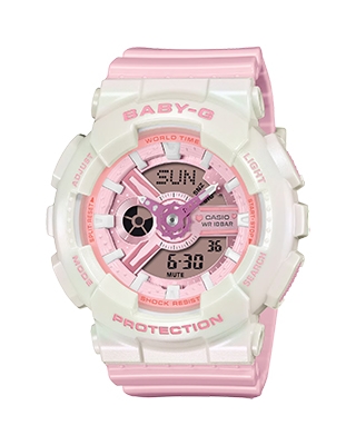 アクティブな女性に向けた耐衝撃・カジュアルウオッチBABY-Gから、柔らかなパステルカラーを纏ったデザインで日常に彩りを添えるモデルです。
